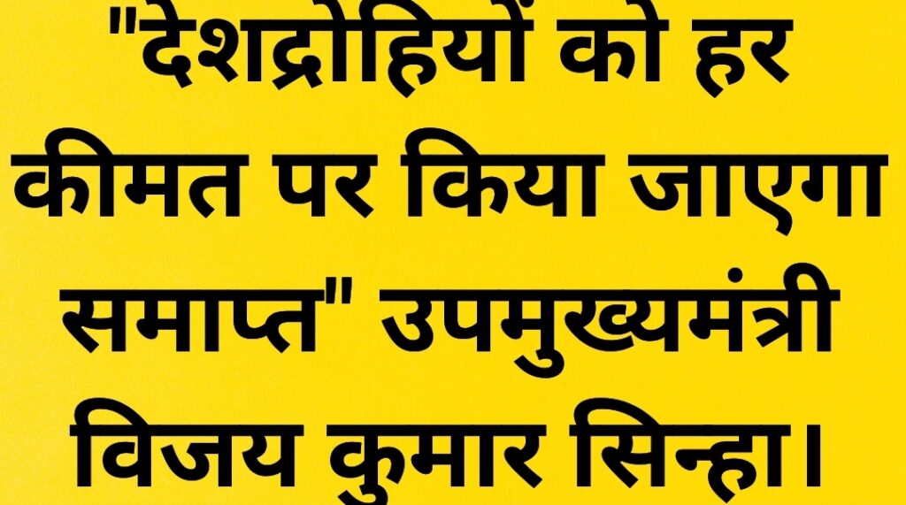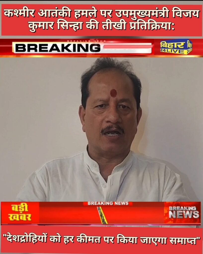 पटना/श्रीनगर – जम्मू-कश्मीर के पहलगांव क्षेत्र में हाल ही में हुए भीषण आतंकी हमले को लेकर बिहार के उपमुख्यमंत्री विजय कुमार सिन्हा ने तीखी प्रतिक्रिया दी है। उन्होंने इस घटना को कायरतापूर्ण और अमानवीय करार देते हुए कहा कि भारत सरकार इसका माकूल जवाब देगी।