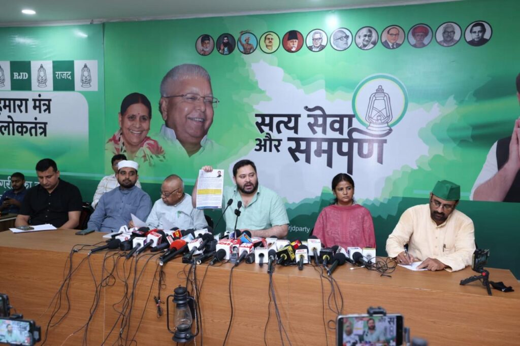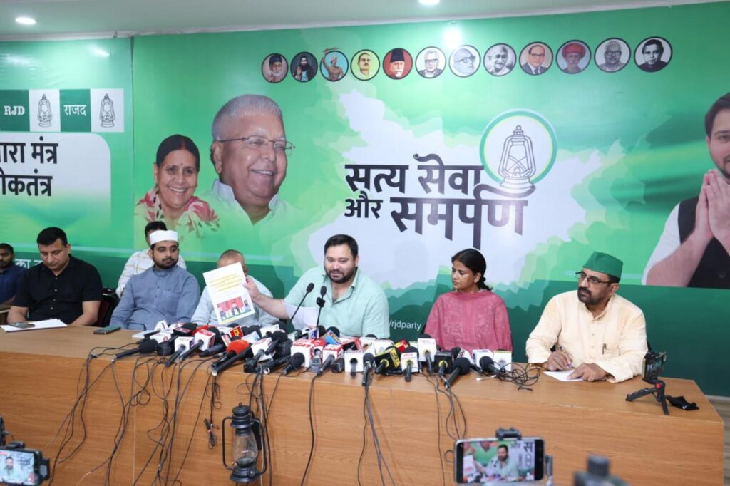 तेजस्वी ने आगे कहा की प्रधानमंत्री बार-बार बिहार आयेंगे और सरकारी खर्चे पर अपनी पार्टी और एन0 डी0 ए0 के हित में प्रचार कर राजनीति करेंगे। लेकिन ये नहीं बतायेंगे कि बिहार को उन्होने क्या दिया। जब भी प्रधानमंत्री बिहार आते है, तो लगभग 100 करोड़ रूपया खर्च होता है। विगत पांच चुनाव से अबतक 200 से अधिक रैली और जनसभा प्रधानमंत्री की हुई है ।इन आयोजनो में 200× 100 = 20 हजार करोड़ रूपया सरकार के द्वारा जनता की गाढ़ी कमाई को अपने पार्टी के प्रचार में खर्च किया गया। जबकि भाजपा सबसे अमीर पार्टी है और गरीब राज्य के आम लोगो की गाढ़ी कमाई को चुसा जा रहा है। हमने जो उनके संबंध मे जो बाते कही थी वह बता नहीं रहें हैं। जबकि वो जनता के गाढ़ी कमाई खर्च करके जनता के पाॅकेट को मारने का काम कर रहे है तो उन्हे पाॅकेट मार नही तो मददगार कहा जायेगा। आम आदमी की गाढ़ी कमाई लुटे जा रहे है और बिहार बाढ़ मे डुबा रहता है, उस दिशा मे सरकार राशि क्यों नहीं खर्च कर रहीं है। इसी तरह से पटना भी डुब जाता है लेकिन ड्रेनेज सिस्टम ठीक नहीं किया जा रहा। जिसपर अमित शाह कहतें है कि बाढ़ नियंत्रण का कार्य किया जायेगा। तो इससे पहले क्या वो बाढ़ के लिए निमंत्रण देने का कार्य कर रहे थे, बतायें। अमित शाह ने बिहार के पत्रकारों और पोर्टल के लोगो को कहा है कि चुनाव तक ही नीतीश जी है। क्योंकि जदयू के भुँजा पार्टी वाले अमित शाह के अनुसार पार्टी चला रहे है, और उन्ही के अनुसार जदयू का उम्मीदवार भी तय किया जायेगा। जदयू के राष्ट्रीय कार्यकारी अध्यक्ष संजय झा तो पहले से ही भाजपा और आर0एस0एस0 के साथ थे। बिहार के लोग अब थके हुए और टायर्ड नेता से निजात चाहते हैं, क्योंकि उनसे बिहार नहीं संभल रहा है। बिहार के लोग नौजवान का नेतृत्व चाहता है जो विकास और बिहार के आगे बढ़ाने के प्रति संकल्पित है। मेरी सोंच जनता की भलाई का है और वो हम करते रहेंगे।