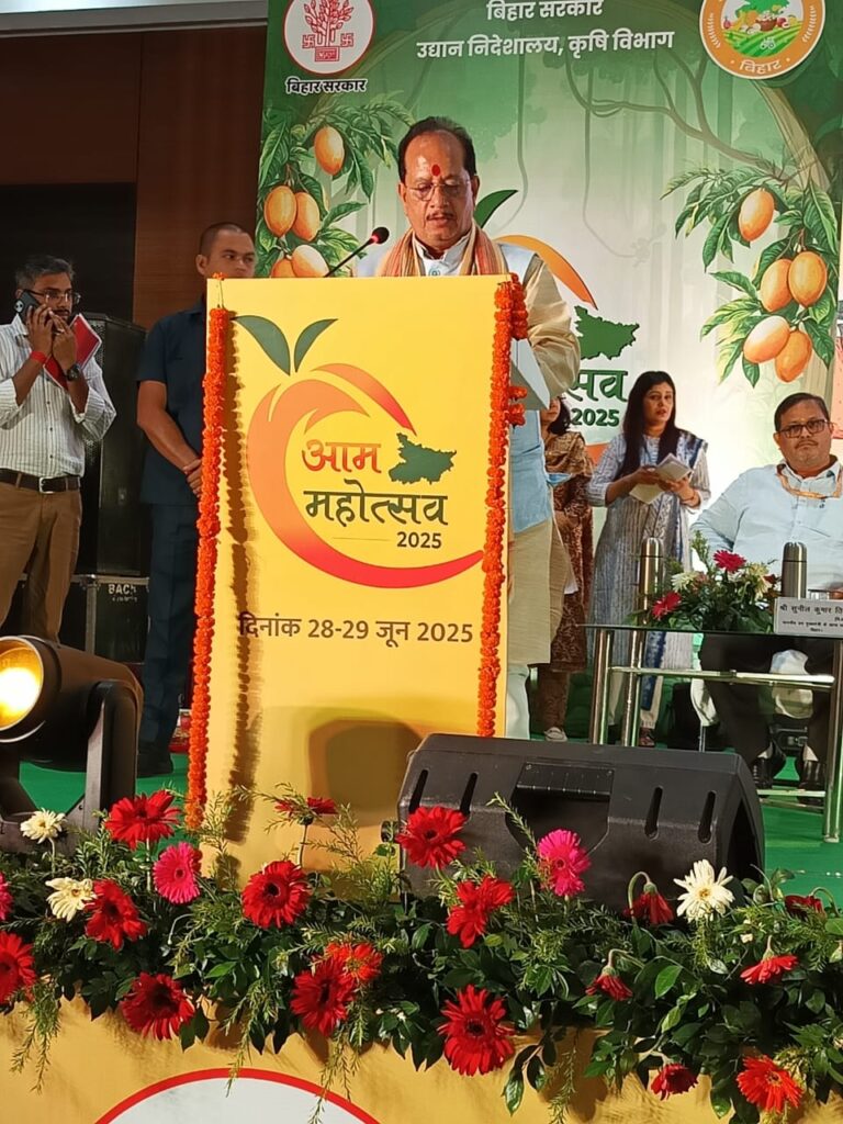 पटना// 28 जून उप मुख्यमंत्री सह कृषि मंत्री विजय कुमार सिन्हा ने कहा कि आज ज्ञान भवन, पटना में आयोजित इस “आम महोत्सव 2025 के शुभ अवसर पर आप सभी का स्वागत करते हुए मुझे अत्यंत खुशी हो रही है। यह महोत्सव हमारी कृषि की समृद्ध परंपरा और विशेष रूप से बिहार में आम की खेती के विकास का उत्सव हैं।