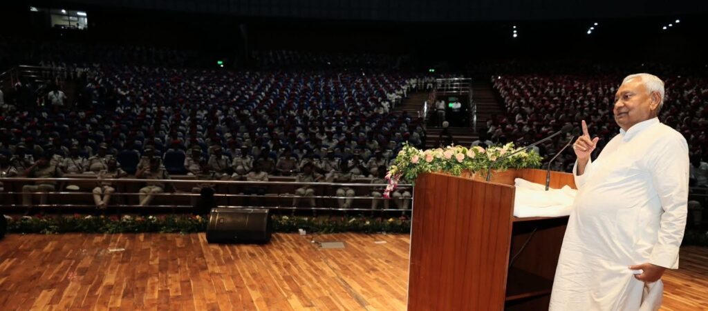 मुख्यमंत्री ने कहा कि हमारा शुरू से कहना है कि राज्य में पुलिस बल की संख्या को और बढ़ाया जाये। इसके लिए वर्ष 2006 से ही पुलिस बल की संख्या में लगातार बढ़ोतरी की गयी। वर्ष 2013 में पुलिस में महिलाओं के लिए 35 प्रतिशत आरक्षण लागू किया गया। वर्ष 2022 में राज्य में पुलिस बल की संख्या बढ़कर 1 लाख 10 हजार हो गयी। वर्ष 2023 में पुलिस सप्ताह के कार्यक्रम में हमने राज्य में पुलिस बल की संख्या बढ़ाकर 2 लाख 29 हजार तय कर दिया। इसके बाद इन सभी पदों को भरने के लिए बिहार में पुलिस बहाली का काम तेजी से हो रहा है। इनमें से 55 हजार पदों पर गृह विभाग द्वारा प्रोन्नति दे कर भरा जा रहा है। इसके अलावा 64 हजार पदों पर सीधी बहाली का काम तेजी से हो रहा है।